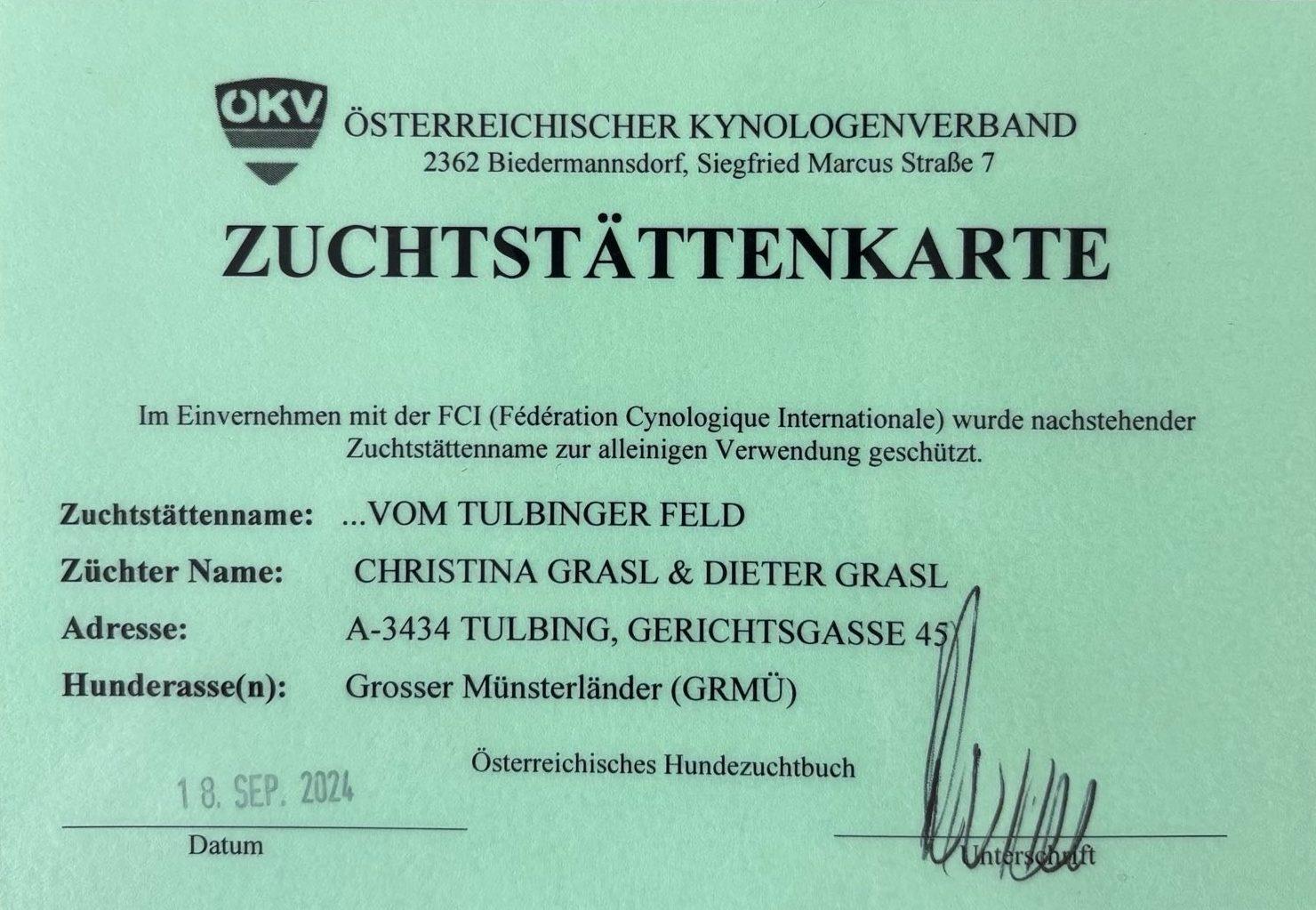 Nachdem Falka die Zuchtprüfungen und alle Voraussetzungen für die Zucht erlangt hatte, stellten wir uns die Frage, ob wir uns der großen Herausforderung des Züchtens stellen sollen. Und wir sind zu der Überzeugung gelangt, dass Falka eine wunderbare Hundemutter sein wird, die die besten Gene an ihre Welpen weitergeben wird. Also haben wir Falka als Zuchthündin angemeldet, die Zuchtstätte beantragt und die Freigabe zur Zucht erhalten.