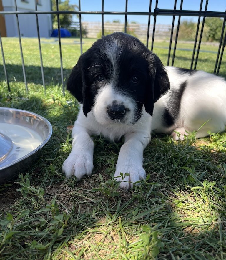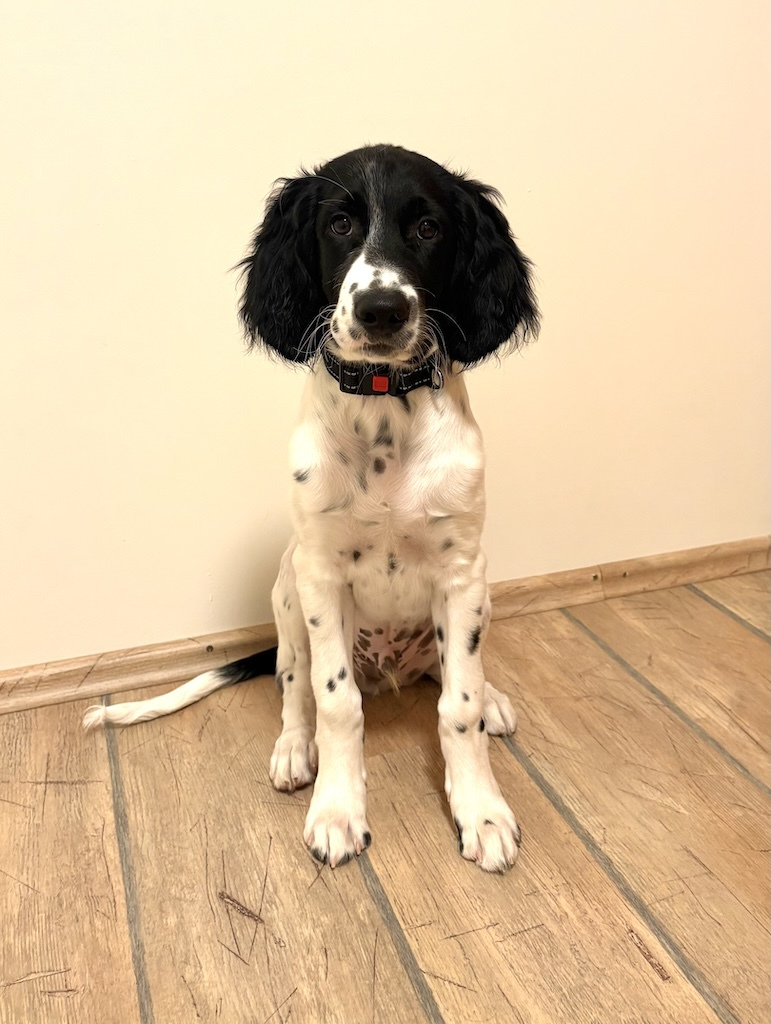 Er hat kein Problem beim Autofahren und schläft nachts brav durch. Er besucht interessiert einen Welpenkurs, dort hat er unglaublichen Spass am Tunnel. Beim Jagdclubwelpenkurs war er schnuppern, daheim wird Fährte und Quersuche geübt. An der Leinenführigleit und am Alleinebleiben haperts noch, aber es gibt Fortschritte. Insgesamt ist er ein stets gut gelaunter, lieber und an allem interessierter Hund.