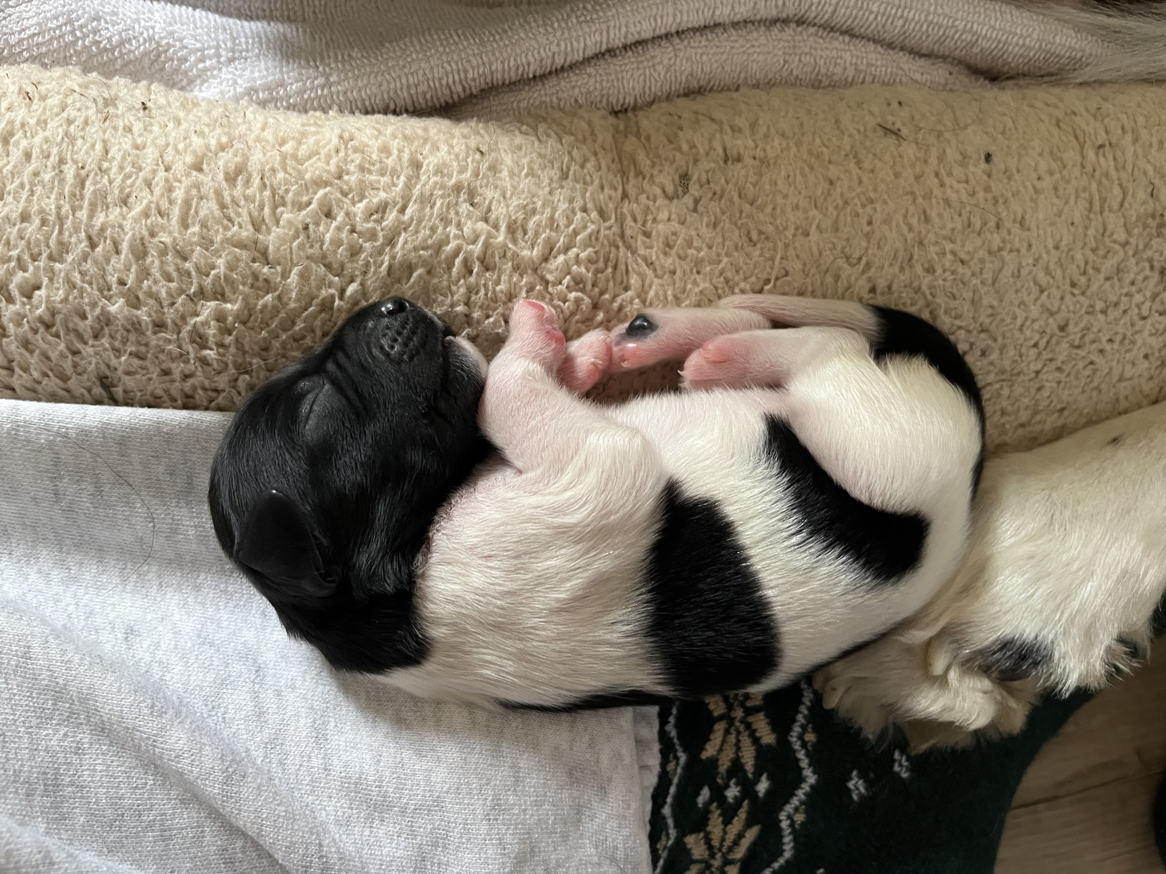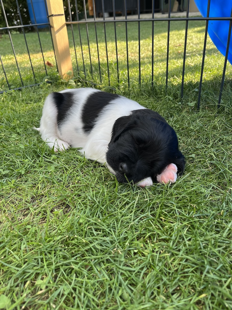 Lotti beherrscht bereits Sitz, Platz, Hier und Bleib. Sie war von Anfang an brav an der Leine und ist beim Spazierengehen sehr folgsam. Sie liebt es, geduscht zu werden, auch das Pfoten abwischen ist überhaupt kein Problem. Momentan üben wir das Zähne putzen, Pfote geben und das Kommando "Steh".