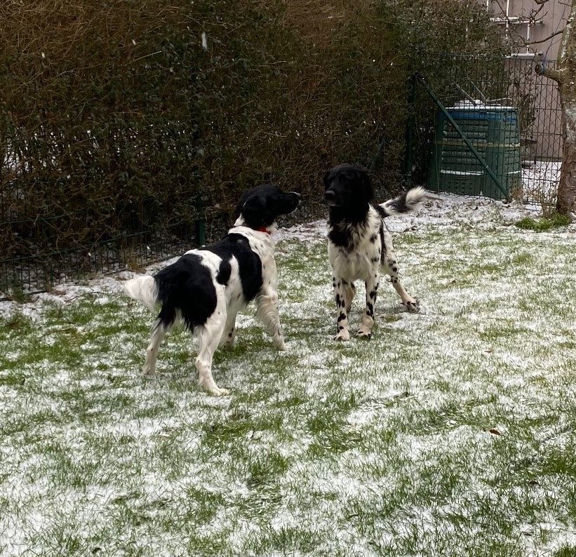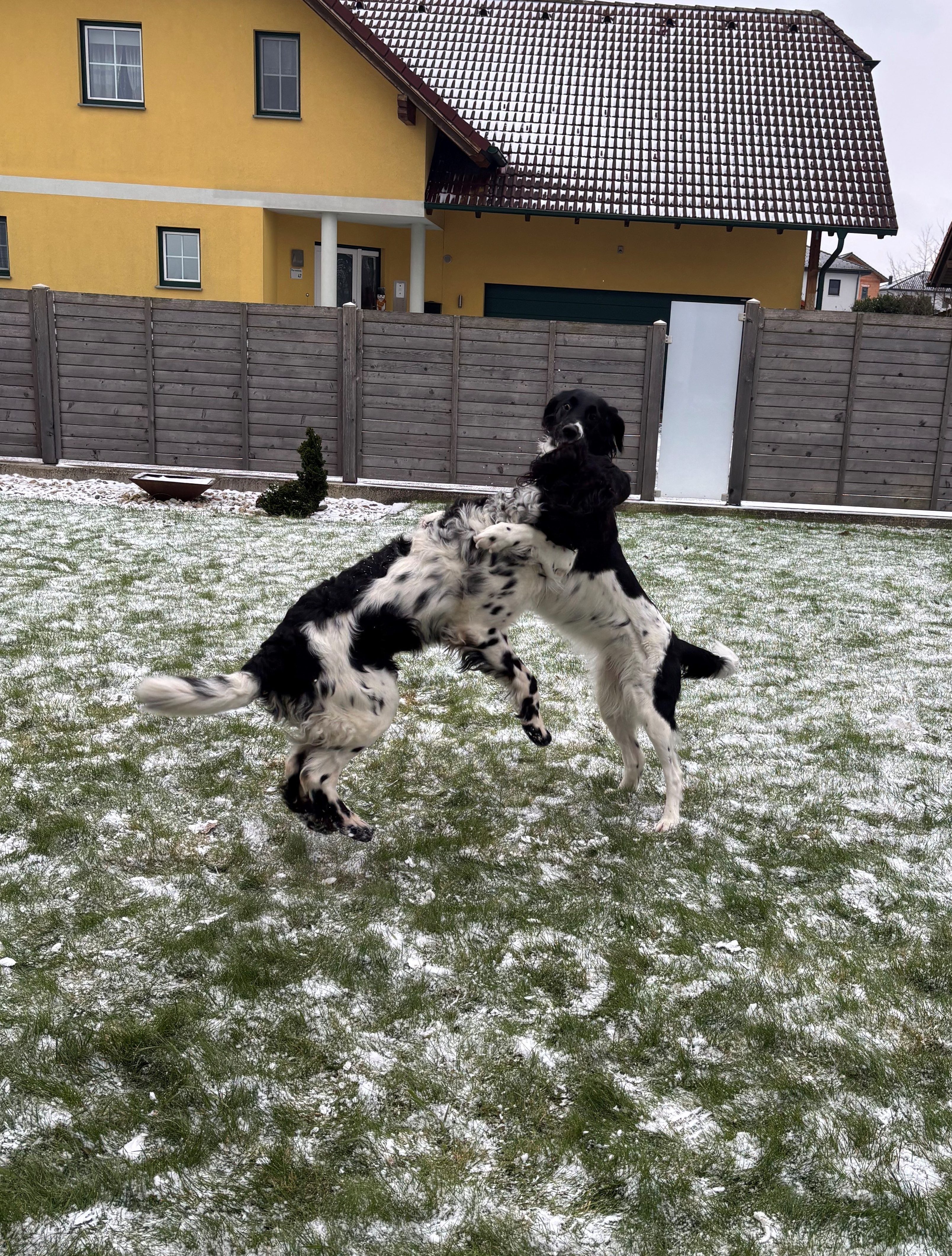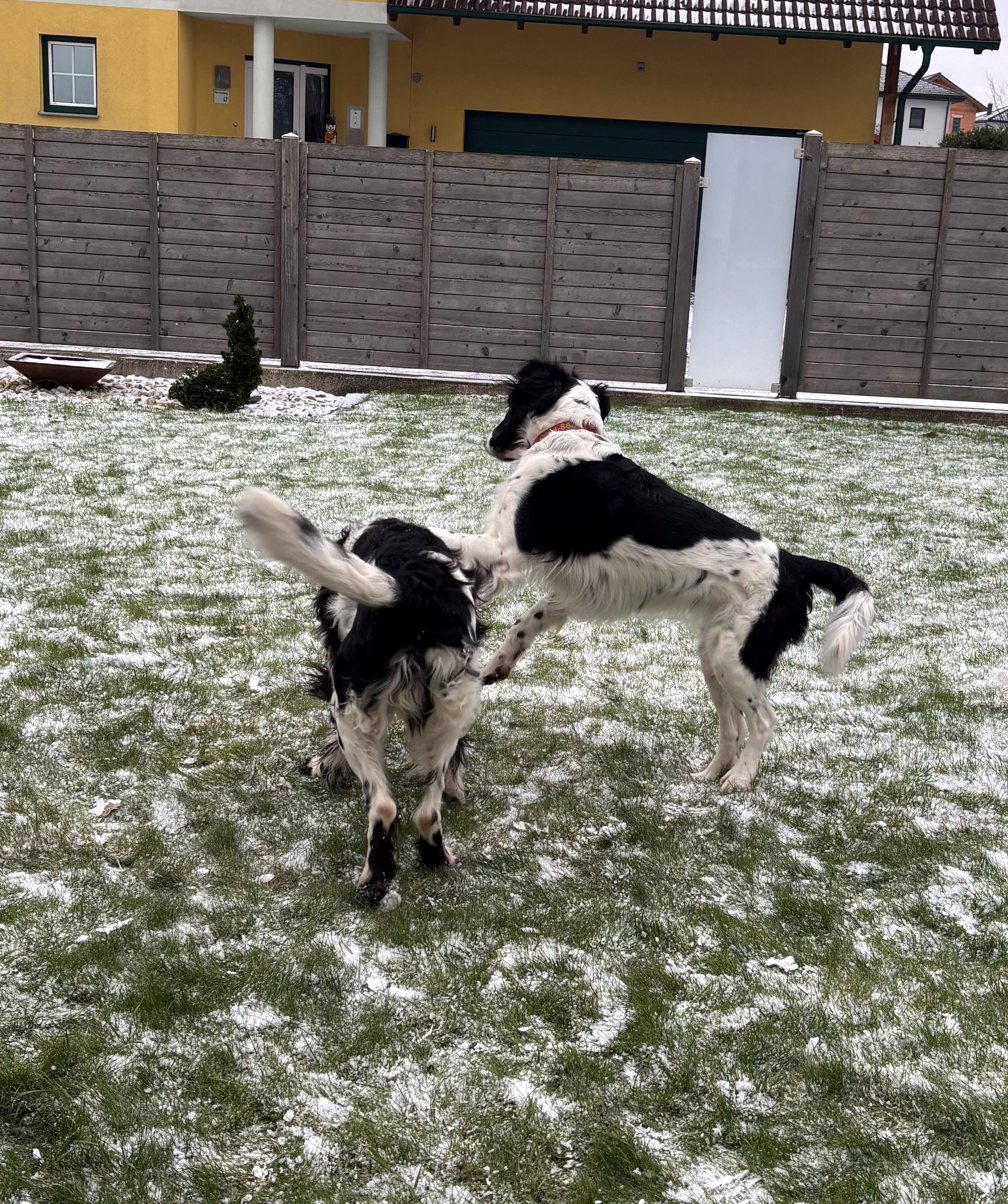 Falka von Grinzing und Tasco II von der Langen Weide treffen sich wieder. Dieses Mal wird es ernst, Falka hat ihre Stehzeit, die Tierklinik hat den perfekten Deckzeitpunkt bestimmt und wir werden vorstellig beim genehmigten Deckrüden. Zu Beginn ist Falka unsicher, was der stattliche Tasco von ihr will. Doch dann fällt der Groschen und der Deckakt wird vollzogen. Wir freuen uns und hoffen, dass alles gut geht! Mehr dazu in ein paar Wochen!