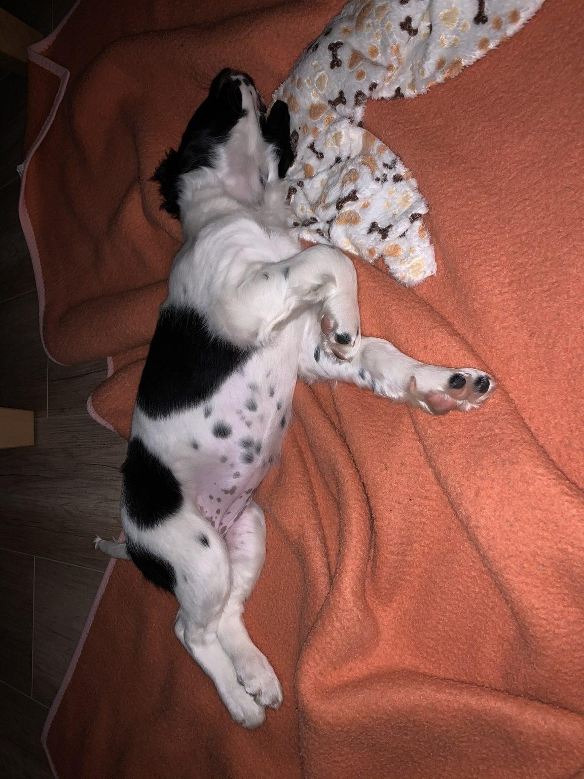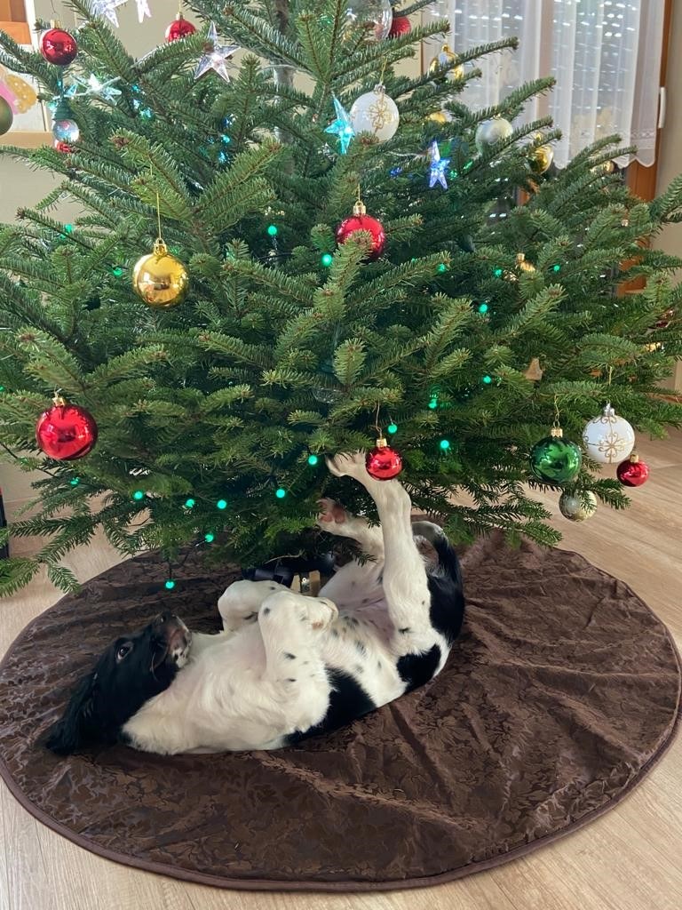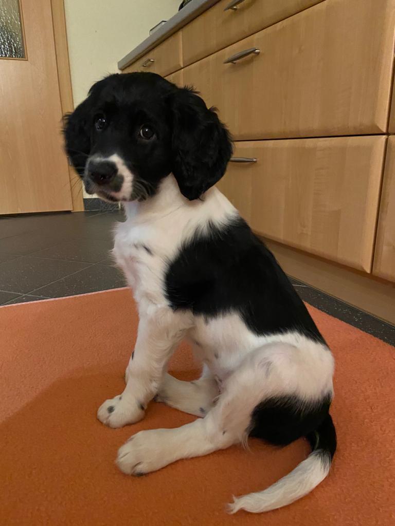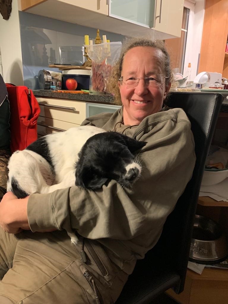 Wir fahren am 16. November 2020 nach Loidesthal und holen das neue Familienmitglied Falka ab. Nachdem sie uns schon kennt von den vielen Besuchen, verschläft sie die meiste Zeit der einstündigen Autofahrt auf der Rückbank bei den Kindern. In Tulbing angekommen, wird erst mal kurz der Garten inspiziert und dann gefressen. Die ersten Nächte schlafen wir neben ihrem „Gitterbett“ – einer Transportbox aus Stoff, die mit einem Zipp geschlossen werden kann. Wenn sie raus muss, meldet sie sich und wir tragen sie in den Garten, damit sie sich dort löst. Als wir versuchen, Falka alleine über Nacht im Vorraum zu lassen, fiept und weint sie unentwegt. Also zieht sie kurzerhand zu uns ins Schlafzimmer, wo sie bis heute im Eck auf ihrer Decke schlafen darf.