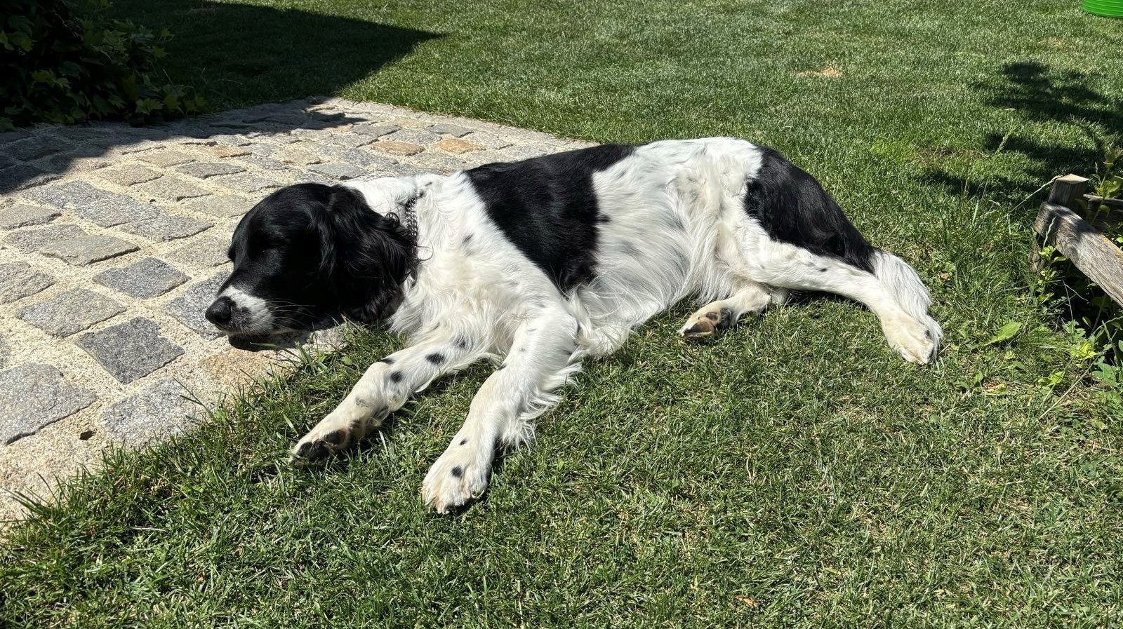 Das Ernährungsverhalten von Falka hat sich geändert, es ist als ob sie an morgendlicher Übelkeit leiden würde, denn sie frisst in der Früh so gut wie gar nichts. Dafür haut sie dann abends rein und holt alles wieder auf. Man merkt, dass sie viel Ruhe benötigt, sie liegt gerne in der Sonne (derzeit nur bis zum frühen Vormittag, denn dann wird es zu heiß) und manchmal zieht sie sich in die Wurfbox zurück, die wir im Wohnzimmer aufgebaut haben. Mit Gretel versteht sie sich momentan gar nicht, die Hormone sorgen dafür, dass sie ihre Welpen beschützt, obwohl die noch gar nicht auf der Welt sind. Jedenfalls ist es eine spannende Zeit für uns alle!