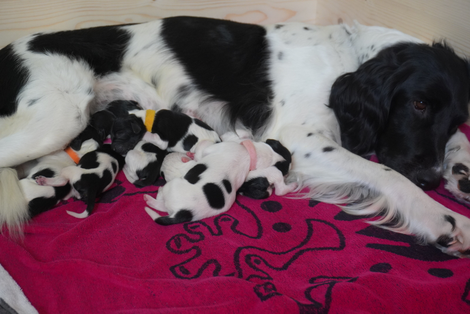 Alles in allem dauert die Geburt zwei Stunden, etwa drei Stunden nach dem letzten Welpen hat Falka wieder Wehen. Es kommt noch eine Nachgeburt, danach kann die Hundemutter endlich schlafen. Eine wunderschöne Erfahrung, die wir durch Falka sammeln dürfen und wir sind überglücklich und dankbar, dass alles so gut gegangen ist. Mehr von Falka und den "Glorreichen Sieben" bald!