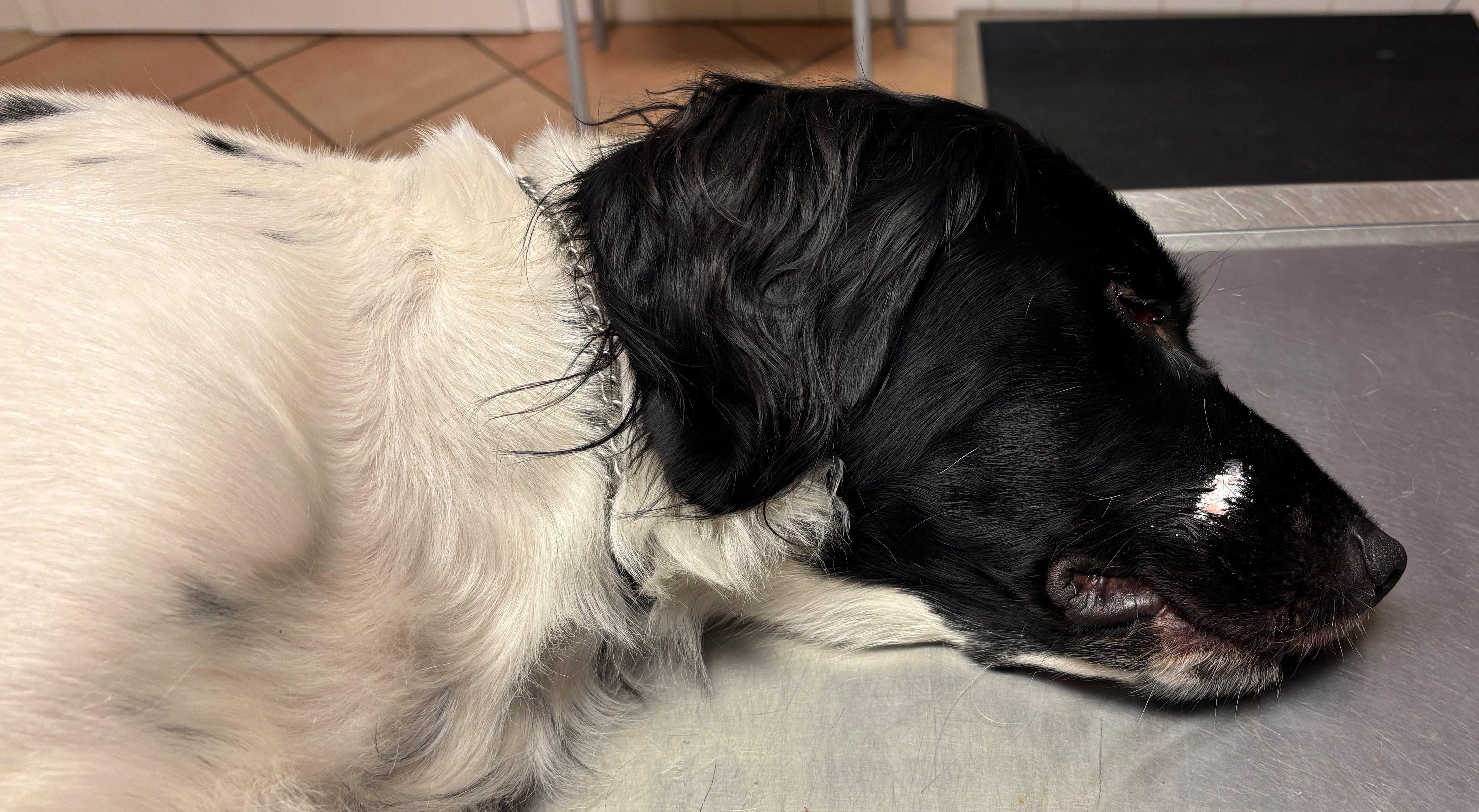 Falka hatte die kranke Fähe in Windeseile gefunden und gestellt, wurde von ihr jedoch an Schnauze und Lefze verletzt. Dieter ist daraufhin mit Falka zu unserem Tierarzt Mag. Hauck gefahren. Dieser hat sie schlafen gelegt und mit vier Nähten zusammengeflickt. Falka ist eine vorbildliche Patientin, die alles über sich ergehen und die Wunden in Ruhe lässt. Wir sind sehr froh, dass nicht mehr passiert ist.